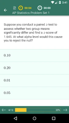 The free Varsity Tutors AP Statistics app for Android devices uses professionally written material by experts in statistics to create a challenging and user-friendly study tool. Simulate test day by taking full-length, timed practice exams, which challenge your knowledge of statistical operations and vocabulary, while also providing you with the same tables and visual cues that you will receive on test day.