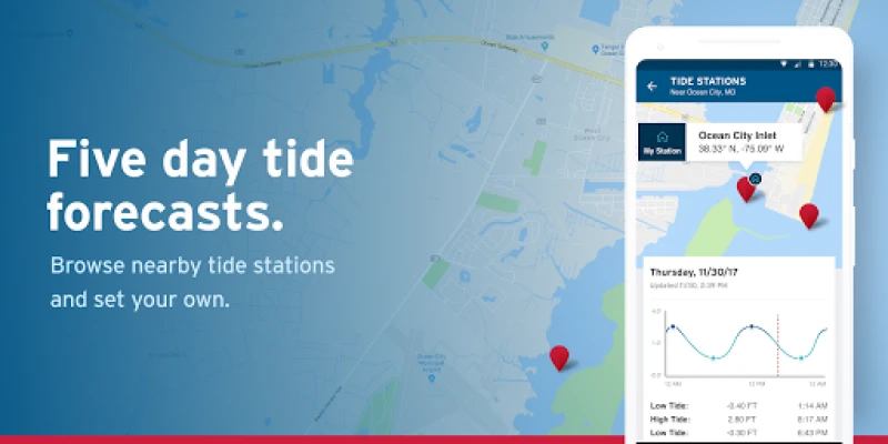 • Customize your experience by selecting your preferred tide and buoy stations.