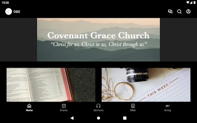 With this app you can: - Watch or listen to past sermons - View our calendar - Read or listen to the Bible -Stay up to date with everything happening at Covenant Grace