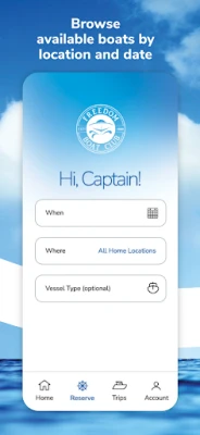 Start your adventure by customizing your search. Select the date, your desired location and vessel type for your upcoming outings. The app helps you easily find a boat that matches your search criteria by displaying the available boats at nearby locations. Simply choose from the available options to finalize your boat selection and confirm your trip.