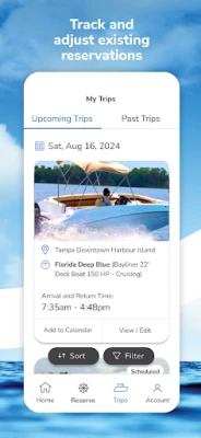 Reserve your next trip directly from your iPhone, whether you're at home or on the go. Making a reservation is a breeze with quick and easy options customized to your boating preferences. Your homepage displays recently visited and nearby locations, as well as your total reservation count for easy tracking.