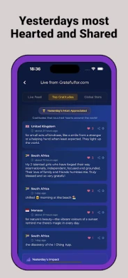 3. Real-time World Map: Witness global gratitudes as they unfold at gratefulfor.com