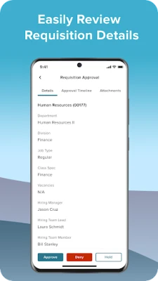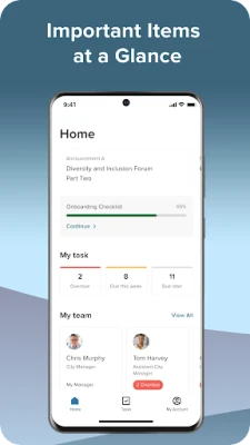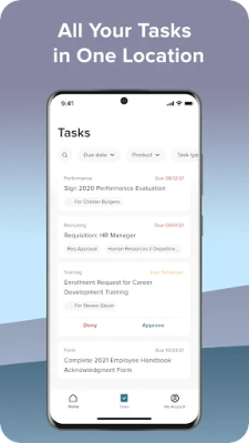 All of your important HR tasks at a glance Complete onboarding or compliance tasks assigned to you Fill out forms on the go Check the progress of other team members’ tasks Quickly view and take action on requisitions Keep everyone up-to-date on important information [Minimum supported app version: 1.28.1]