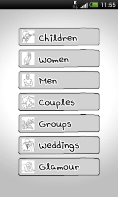 A variety of posing categories are available in Posing App: Children, Couples, Portraits, Women, Men, Groups and Weddings. Over 300 poses are included offering a wide choice in any modeling scenario. As an additional purchase Glamour section is available including additional 86 carefully selected glamour poses for female models. While browsing the poses, use the "Add to favorites" feature for fast access during a photo shoot.