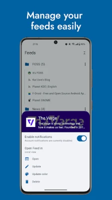 * Feeds and folders management (create, update and delete feeds/folders if supported by the service API)